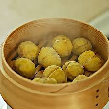 밤 삶는 방법 중 찜기를 이용한 방법도 있습니다. 찜기에 칼집 낸 밤을 올리고, 냄비에 물 400ml~500ml를 넣습니다. 뚜껑을 덮고 중불에서 25분 정도 쪄줍니다. 찜기로 삶으면 밤의 수분이 날아가지 않고 부드러운 식감을 유지할 수 있습니다. 찜기에서 쪄낸 밤은 더욱 맛있게 즐길 수 있습니다. 밤 삶는 방법 중 이 방법을 추천합니다.